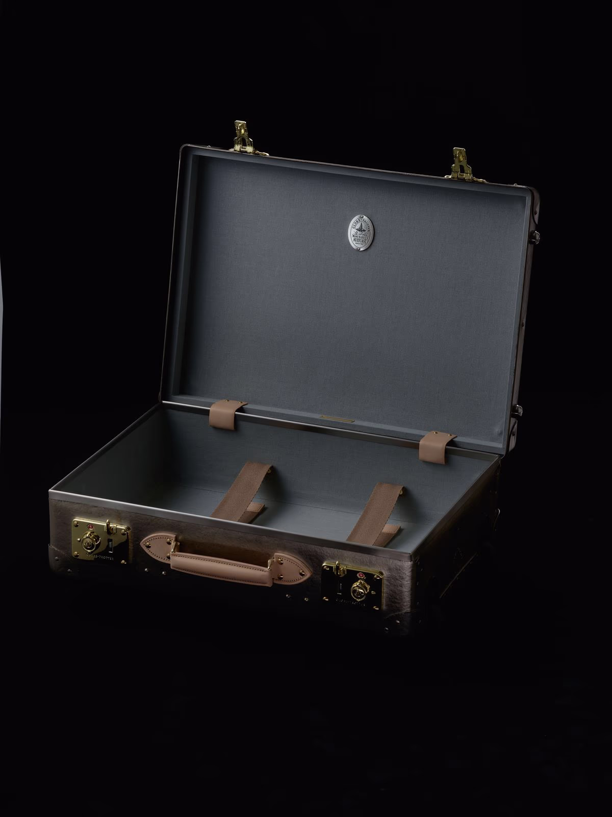 本製品は、金沢箔メーカー・箔一の卓越した手仕事によって、スーツケース本体のヴァルカナイズドファイバーに錫箔を一枚一枚丁寧に施すことで完成する。128年間変わらぬ製法でつくられるグローブ・トロッターのクラフトマンシップと、400年以上の歴史を持つ石川県の伝統工芸・金沢箔の技術。この英国と日本を代表する職人技の共創によって生まれたスーツケースは、まさに工芸作品と呼ぶにふさわしい存在である。光を受ける角度によってさまざまな表情を見せ、明るい環境でも、柔らかな陰影の中でも、独特の輝きを放つ。