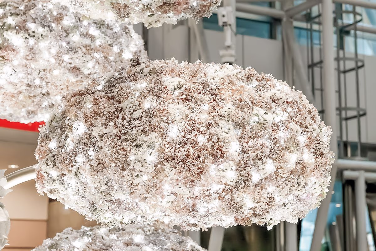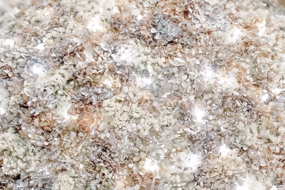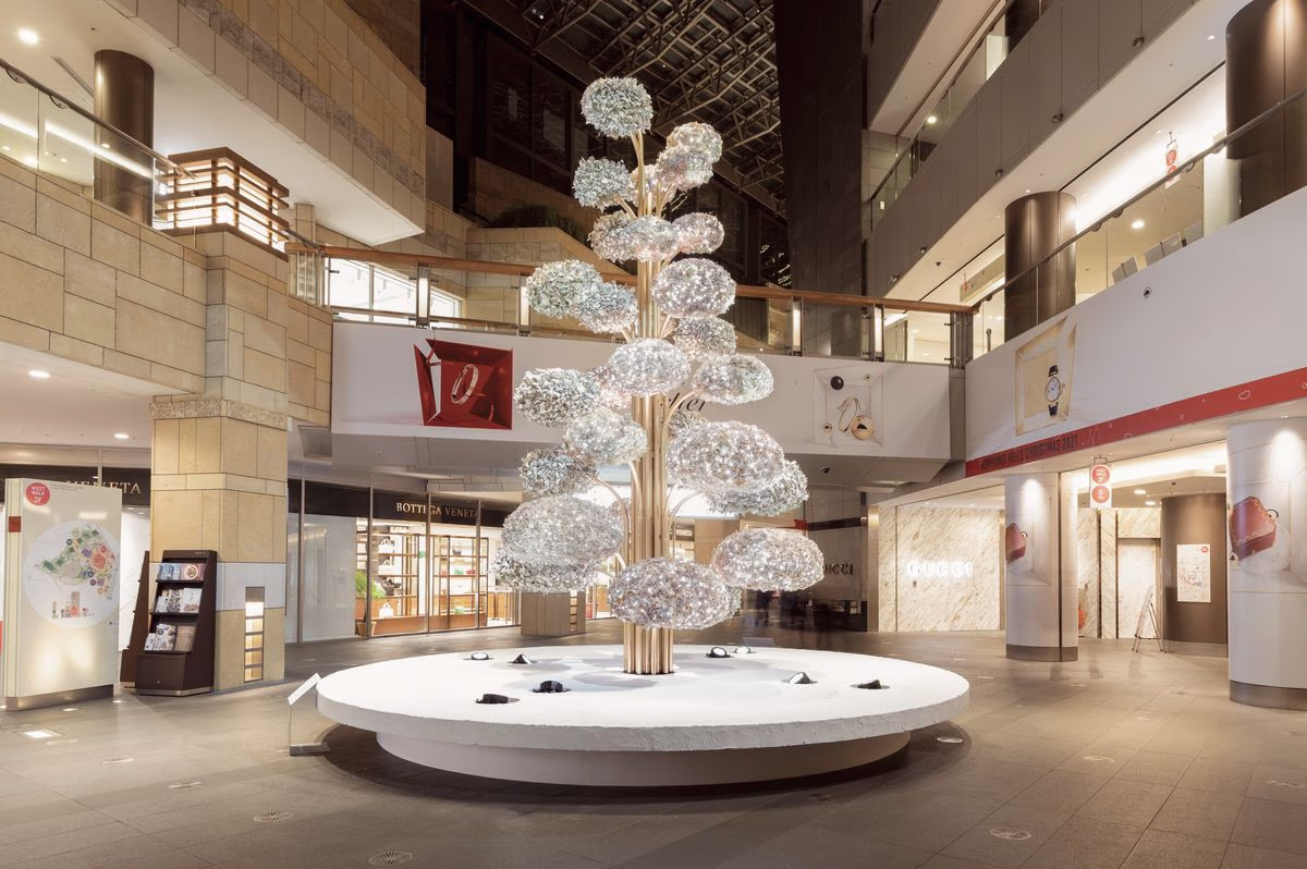 A Christmas tree designed for Roppongi Hills. Amid the COVID-19 pandemic, when special care was required in expressing festive themes in public spaces, the piece was created using dried flowers that had lost their purpose due to the crisis. The result was a one-of-a-kind tree—quiet, poetic, and imbued with a sense of resilience and renewal.